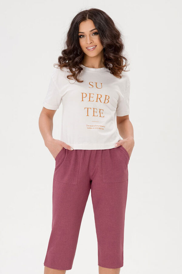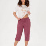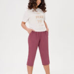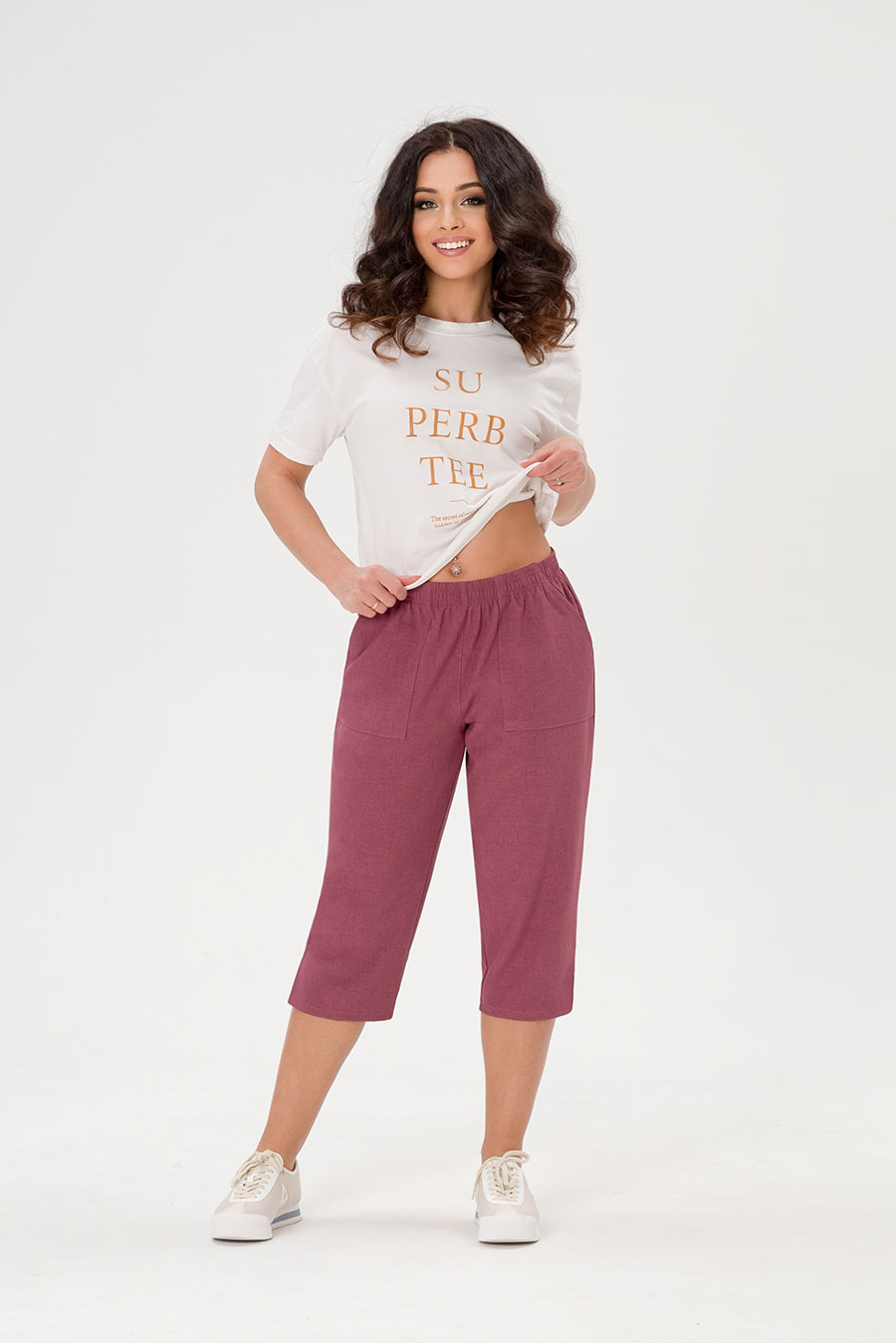 Женские капри с накладными карманами. Элегантная длина с разрезами по бокам. Пояс на резинке и кулисе.