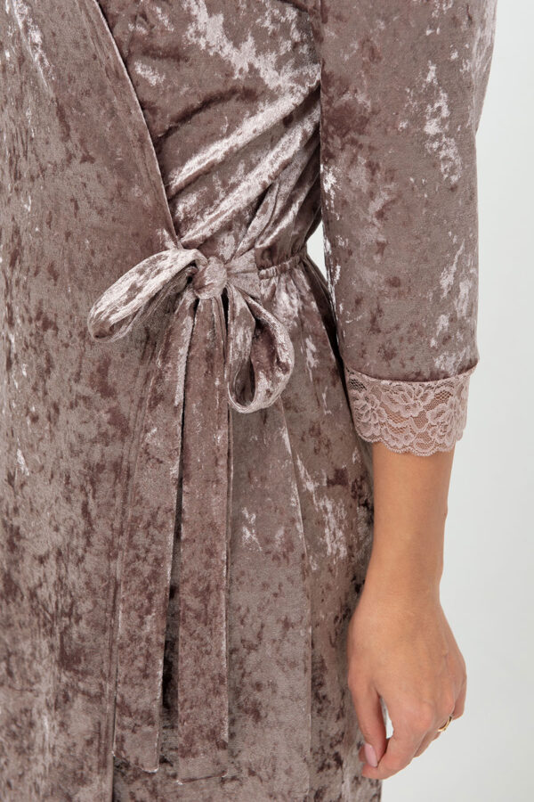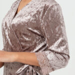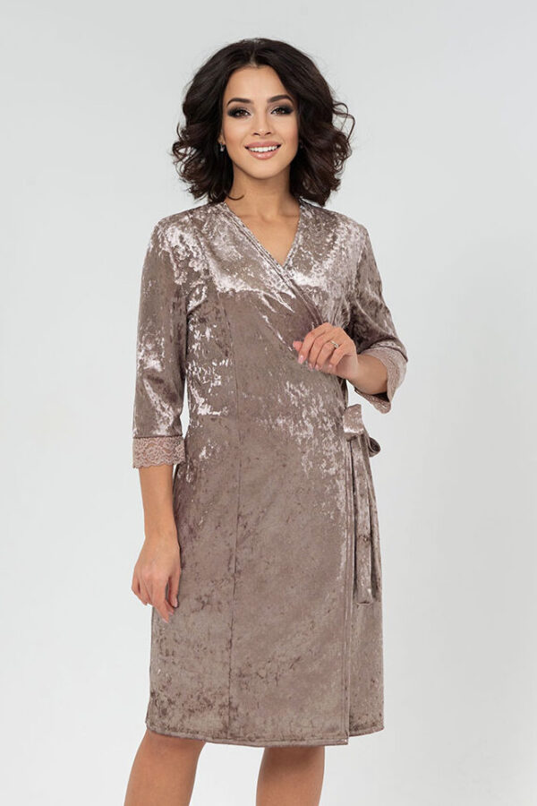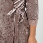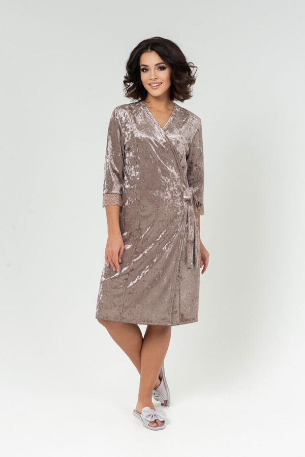 Шикарный домашний халат на запах из бархата, рукав 3/4 декорирован кружевом. Нежная и приятная ткань в потрясающем цвете — идеальный подарок для себя или близкой подруги. Халат подходит под любой тип фигуры благодаря идеальным лекалам и широкому размерному ряду, есть и большие размеры. В этом шикарном халате приятно не только окунуться в мир спокойствия и домашнего уюта, он идеально подойдет для встречи гостей. При этом вы всегда будете выглядеть элегантно и привлекательно! Бренд «Serenada» — всегда качественная одежда для женщин. Сделано в России на собственном производстве.