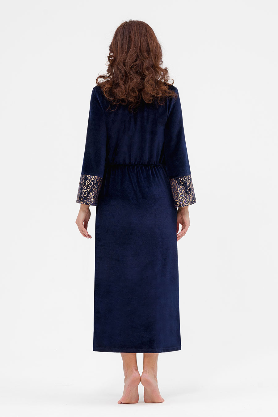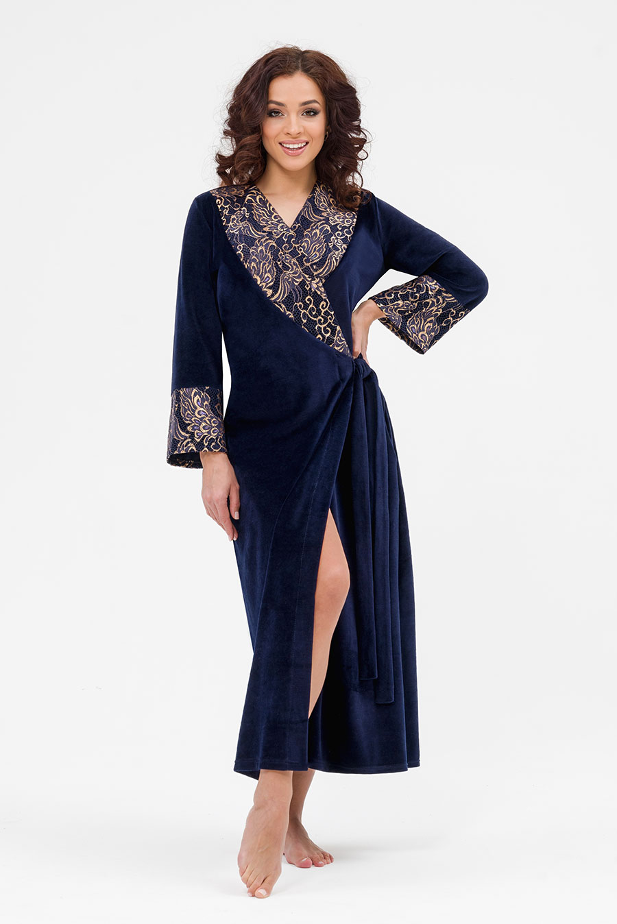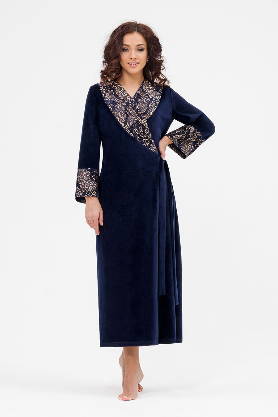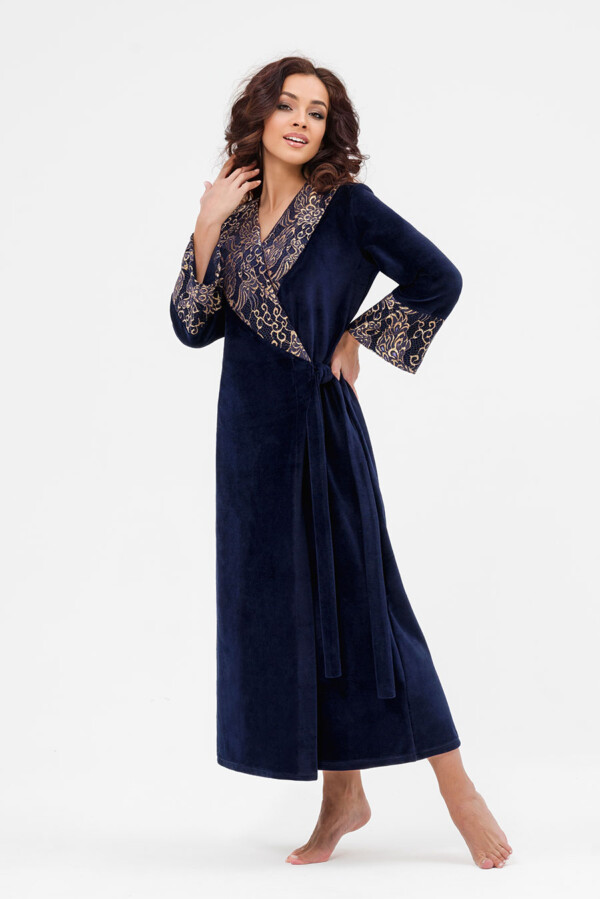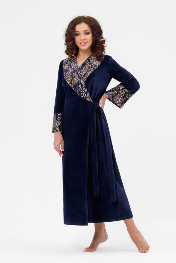 Уютный женский халат в пол выполнен из мягкого велюра. Халат на запах помогает регулировать плотность облегания и позволяет чувствовать себя комфортно в любой ситуации. Удобство в сочетании с элегантностью.