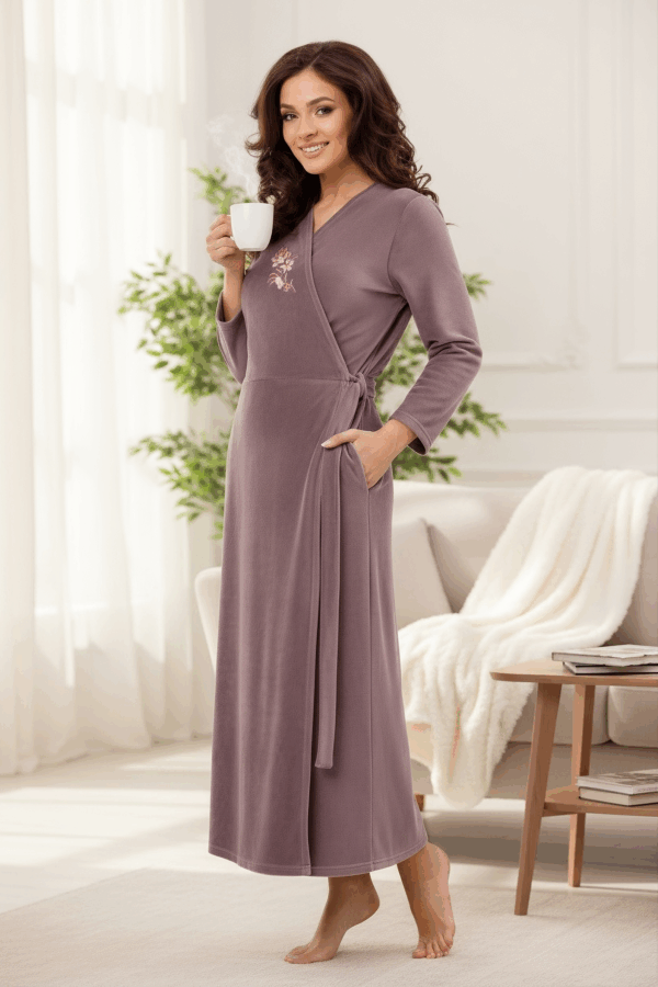 Женский шикарный и тёплый халат из велюра — идеальный подарок для себя, для мамы или подруги. Халат подходит под любой тип фигуры благодаря идеальным лекалам и широкому размерному ряду, в том числе нашим обольстительным обладательницам SIZE PLUS. В этом шикарном халате приятно не только окунуться в мир спокойствия и домашнего уюта, он идеально подойдет для встречи гостей, сауны, бани, бассейна, душа, отдыха. При этом вы всегда будете выглядеть элегантно и привлекательно! Бренд «Serenada» — всегда качественная одежда для женщин. Сделано в России на собственном производстве.