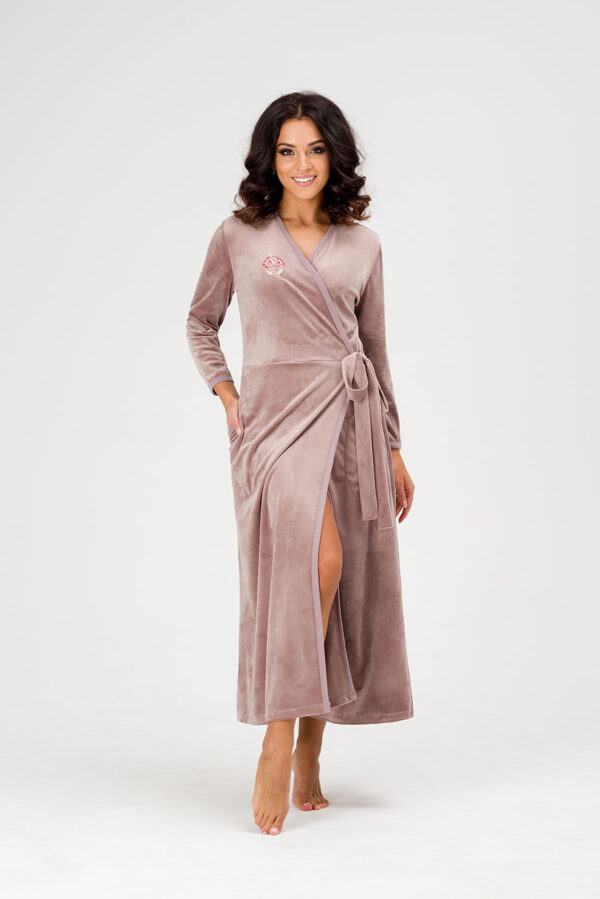 Женский шикарный и теплый халат из переливающегося бархатистого велюра. Прекрасная новинка для домашнего гардероба. Нежная и приятная ткань в потрясающем цвете — идеальный подарок для себя, для мамы или близкой подруги. Халат подходит под любой тип фигуры благодаря идеальным лекалам и широкому размерному ряду, есть и большие размеры. В этом шикарном халате приятно не только окунуться в мир спокойствия и домашнего уюта, он идеально подойдет для встречи гостей. Отлично подойдет для дома бани, халат банный, для сауны, в бассейн, для душа, отдыха. При этом вы всегда будете выглядеть элегантно и привлекательно! Бренд «Serenada» — всегда качественная одежда для женщин. Сделано в России на собственном производстве.