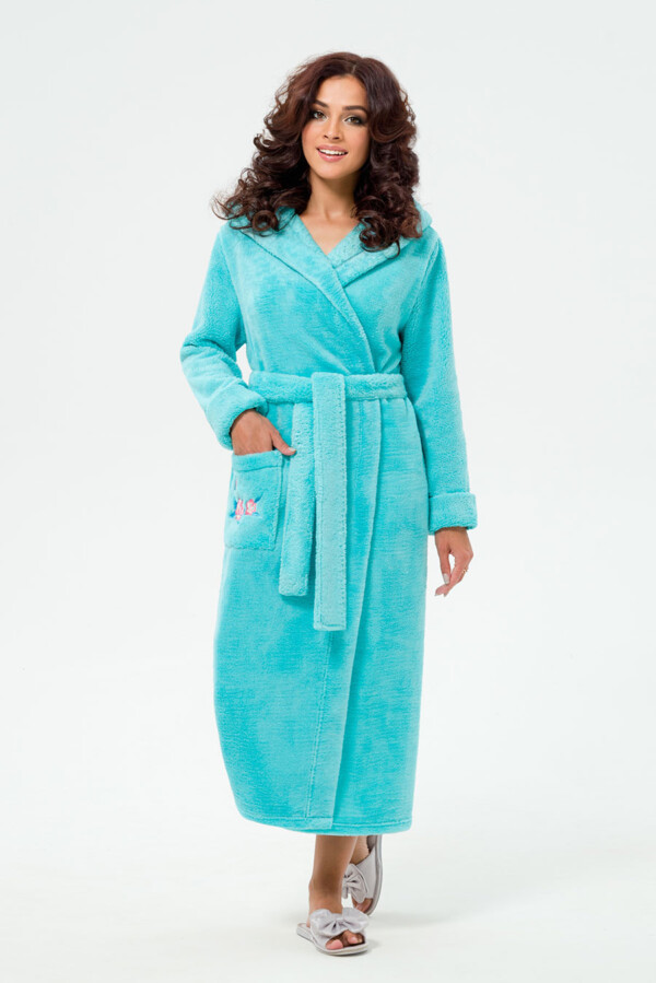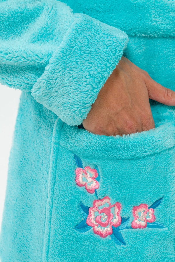 Шикарный женский халат из пушистого и теплого Wellsoft. Модель на запах, декорирована вышивкой на кармане.
