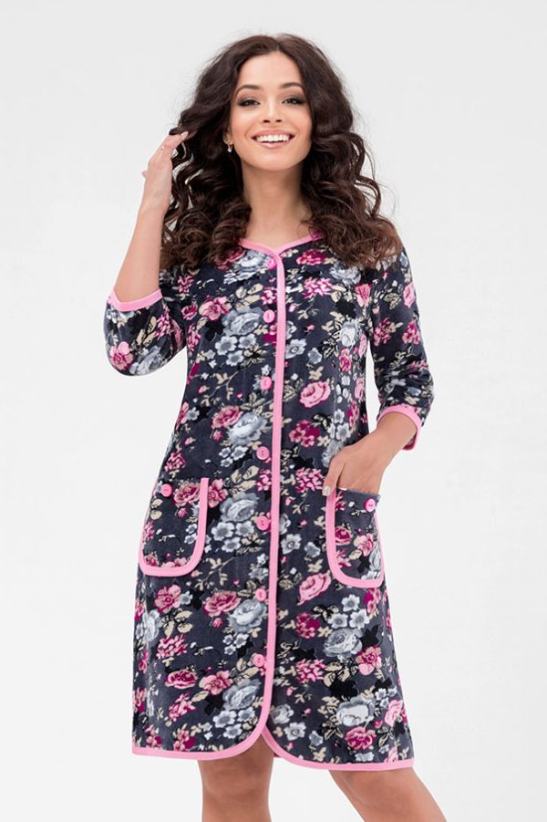 Яркий домашний халат на пуговицах и рукавом 3/4 — один из самых практичных вариантов для комфортного занятия домашними делами. Эта модель из уютного набивного велюра прекрасно подойдет для отдыха дома и на даче. Яркая расцветка всегда актуальна для любого сезона. Широкий размерный ряд включает размеры для обладательниц SIZE PLUS. Стильный и легкий, он подойдет любому типу фигуры, в том числе беременным и кормящим мамам. TM Serenada, женская одежда от производителя. Сделано в России на собственном производстве.
