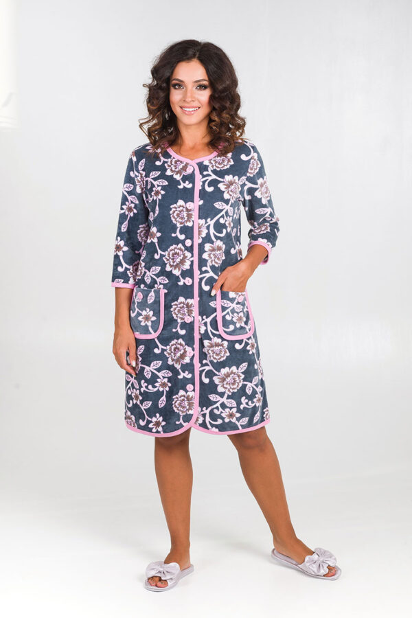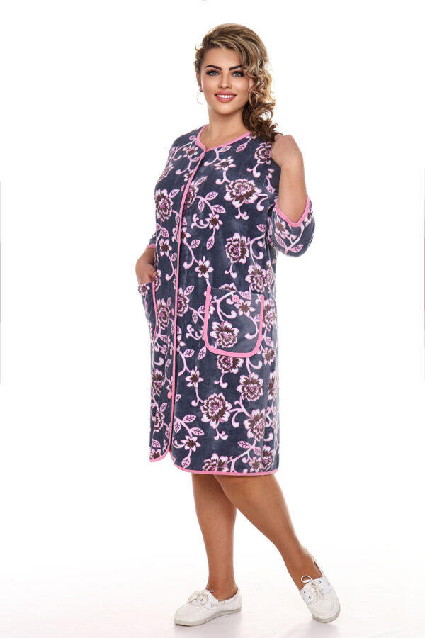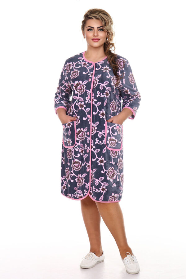 Яркий домашний халат на пуговицах и рукавом 3/4 — один из самых практичных вариантов для комфортного занятия домашними делами. Эта модель из уютного набивного велюра прекрасно подойдет для отдыха дома и на даче. Яркая расцветка всегда актуальна для любого сезона. Широкий размерный ряд включает размеры для обладательниц SIZE PLUS. Стильный и легкий, он подойдет любому типу фигуры, в том числе беременным и кормящим мамам. TM Serenada, женская одежда от производителя. Сделано в России на собственном производстве.