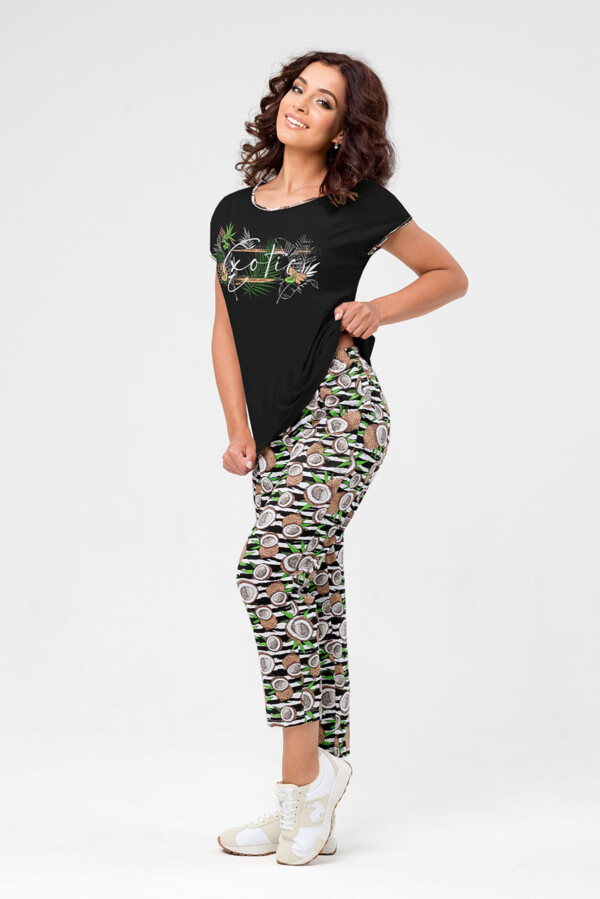 Домашний комплект с брюками на резинке из 100% хлопка позволит коже дышать, не стесняя движения. За счёт мягкой трикотажной ткани и расширенного размерного ряда, модель подойдет под все типы фигур и телосложений. Этот костюм рекомендуем носить в качестве домашней одежды женщинам и девочкам-подросткам, беременным и кормящим мамам. Футболка до середины бедра, спущенный рукав и брюки – бриджи длины 7/8 . Всегда в продаже широкая цветовая гамма. В этом домашнем костюме вы будете чувствовать себя красивой и уверенной в себе. Идеальный подарок для мам, бабушек, дочерей на 8 марта, день рождения, на новый год, рождество.