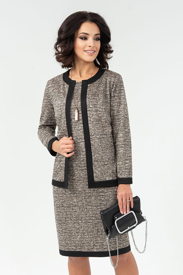 Очень элегантный, удобный и теплый женский костюм. Костюм очень функционален — можно снять пиджак и вы уже не в костюме, а переоделись в стильное платье, платье без рукавов, которое великолепно смотрится на любой фигуре. Можно носить его в офис, на встречу, на торжество и даже в театр. Костюм женский представлен в широком размерном ряду, в том числе есть и большие размеры, отлично подойдет для беременных. Этот женский костюм двойка — должен быть в гардеробе каждой женщины, рядом с платье вечернее, платье нарядное вечернее женское, повседневное, округлый воротник, платье женское для фотосессии, домашний костюм и модный спортивный костюм для девочки и женщины на любой возраст. TM Serenada, женская одежда от производителя. Сделано в России на собственном производстве.