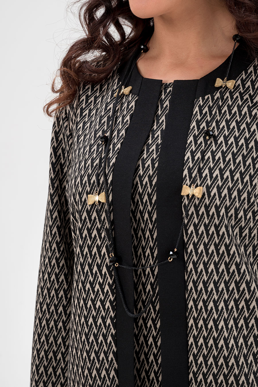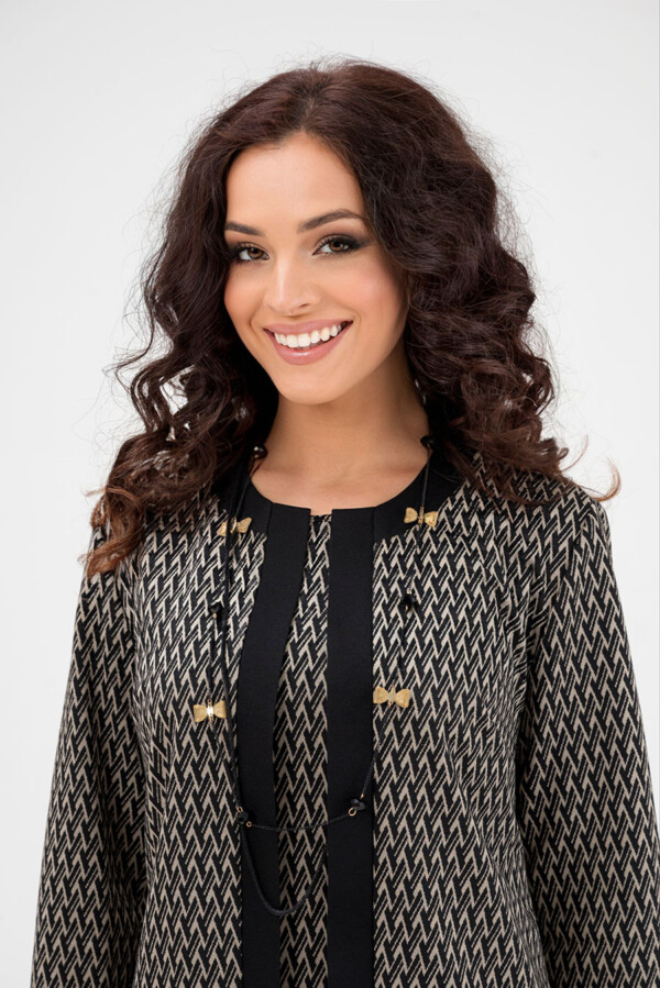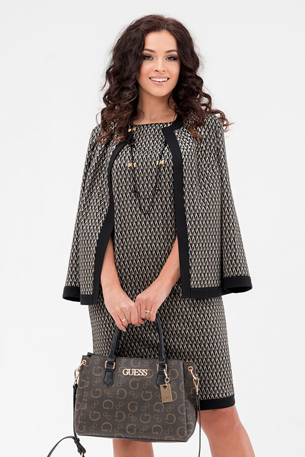 Очень элегантный, удобный и теплый женский костюм. Костюм очень функционален — можно снять пиджак и вы уже не в костюме, а переоделись в стильное платье, платье без рукавов, которое великолепно смотрится на любой фигуре. Можно носить его в офис, на встречу, на торжество и даже в театр. Костюм женский представлен в широком размерном ряду, в том числе есть и большие размеры, отлично подойдет для беременных. Этот женский костюм двойка — должен быть в гардеробе каждой женщины, рядом с платье вечернее, платье нарядное вечернее женское, повседневное, округлый воротник, платье женское для фотосессии, домашний костюм и модный спортивный костюм для девочки и женщины на любой возраст. TM Serenada, женская одежда от производителя. Сделано в России на собственном производстве.