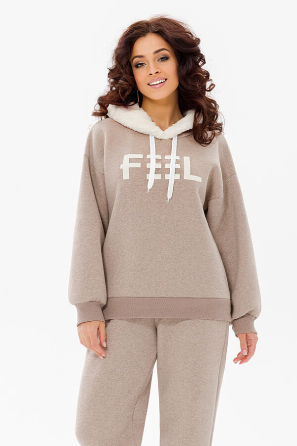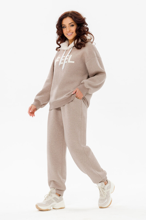 Костюм выполнен из футера 3-х нитки с начесом качества пенье. Это практичный образ как на каждый день, так и для поездок и активного отдыха холодной осенью и зимой. Верх: худи оверсайз с начесом, низ: брюки с высокой посадкой. Футер -это натуральный хлопок с небольшим количеством полиэстера для поддержания формы и эластичности изделия. Костюм дышащий, мягкий, комфортный благодаря своему натуральному составу, прекрасно подходит для прохладной и холодной погоды.
