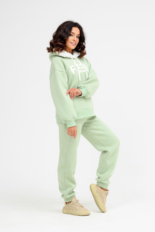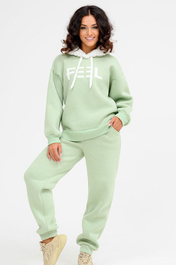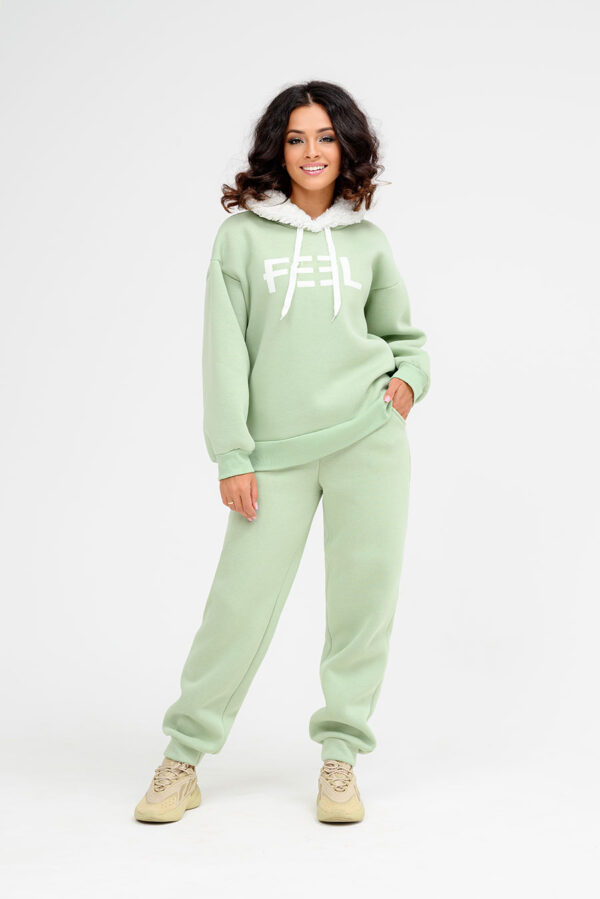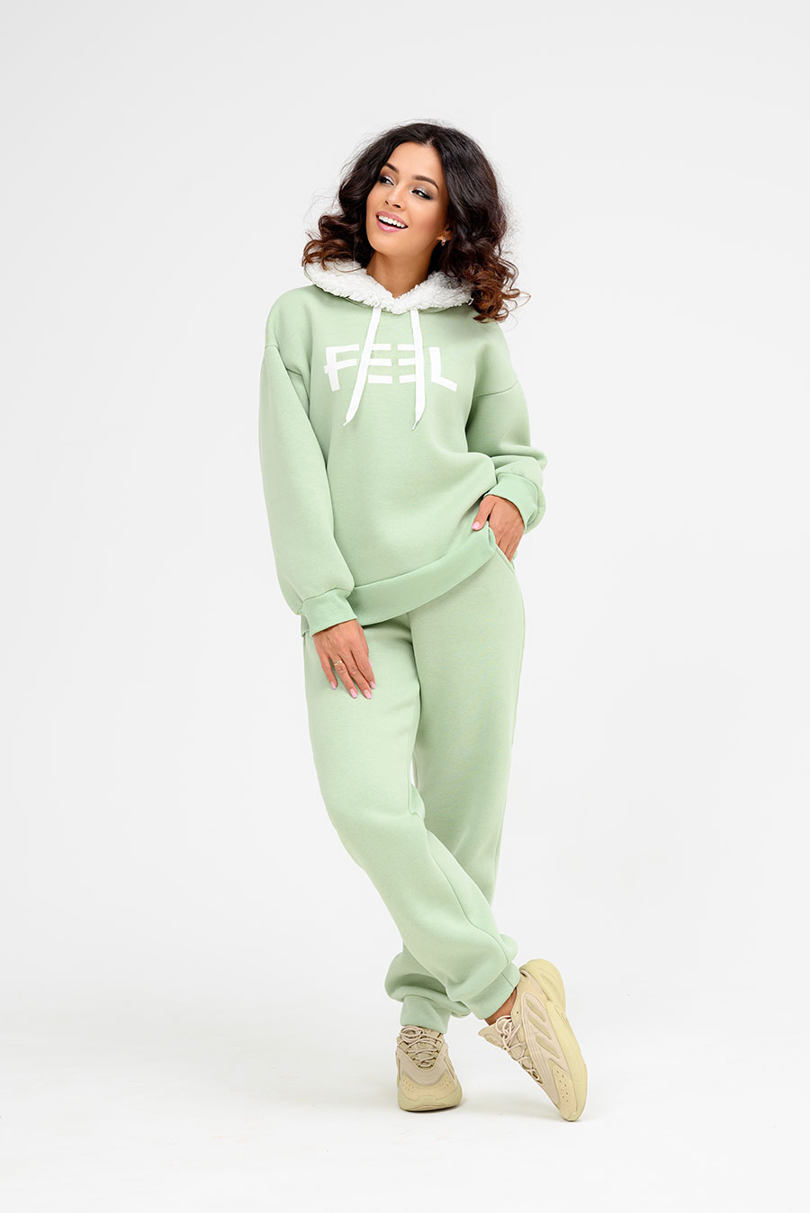Костюм выполнен из футера 3-х нитки с начесом качества пенье. Это практичный образ как на каждый день, так и для поездок и активного отдыха холодной осенью и зимой. Верх: худи оверсайз с начесом, низ: брюки с высокой посадкой. Футер -это натуральный хлопок с небольшим количеством полиэстера для поддержания формы и эластичности изделия. Костюм дышащий, мягкий, комфортный благодаря своему натуральному составу, прекрасно подходит для прохладной и холодной погоды.