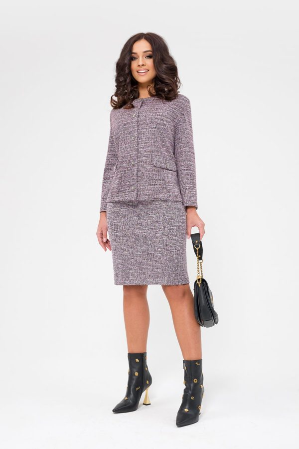 Очень элегантный, удобный и теплый деловой женский костюм из буклированной ткани . Костюм очень функционален — можно снять пиджак и вы в нарядной блузке с юбкой, или в строгой водолазке или в романтичном топе с юбкой. Можно носить его в офис, на встречу, на торжество и даже в театр. Костюм женский представлен в широком размерном ряду, в том числе есть и большие размеры. Этот женский костюм двойка — должен быть в гардеробе каждой женщины, рядом с платьем вечернее, платье нарядное вечернее женское, повседневное, округлый воротник, платье женское для фотосессии, домашний костюм и модный спортивный костюм для девочки и женщины на любой возраст. TM Serenada, женская одежда от производителя. Сделано в России на собственном производстве.