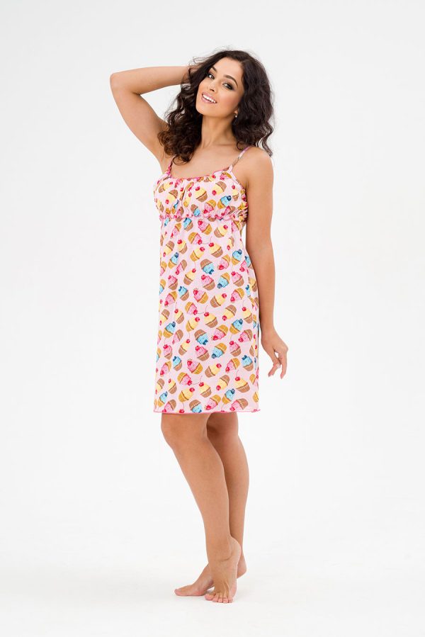 Женская сорочка из хлопкового трикотажа. Модель на тонких бретелях, очень удобная сборка по груди — хит продаж!