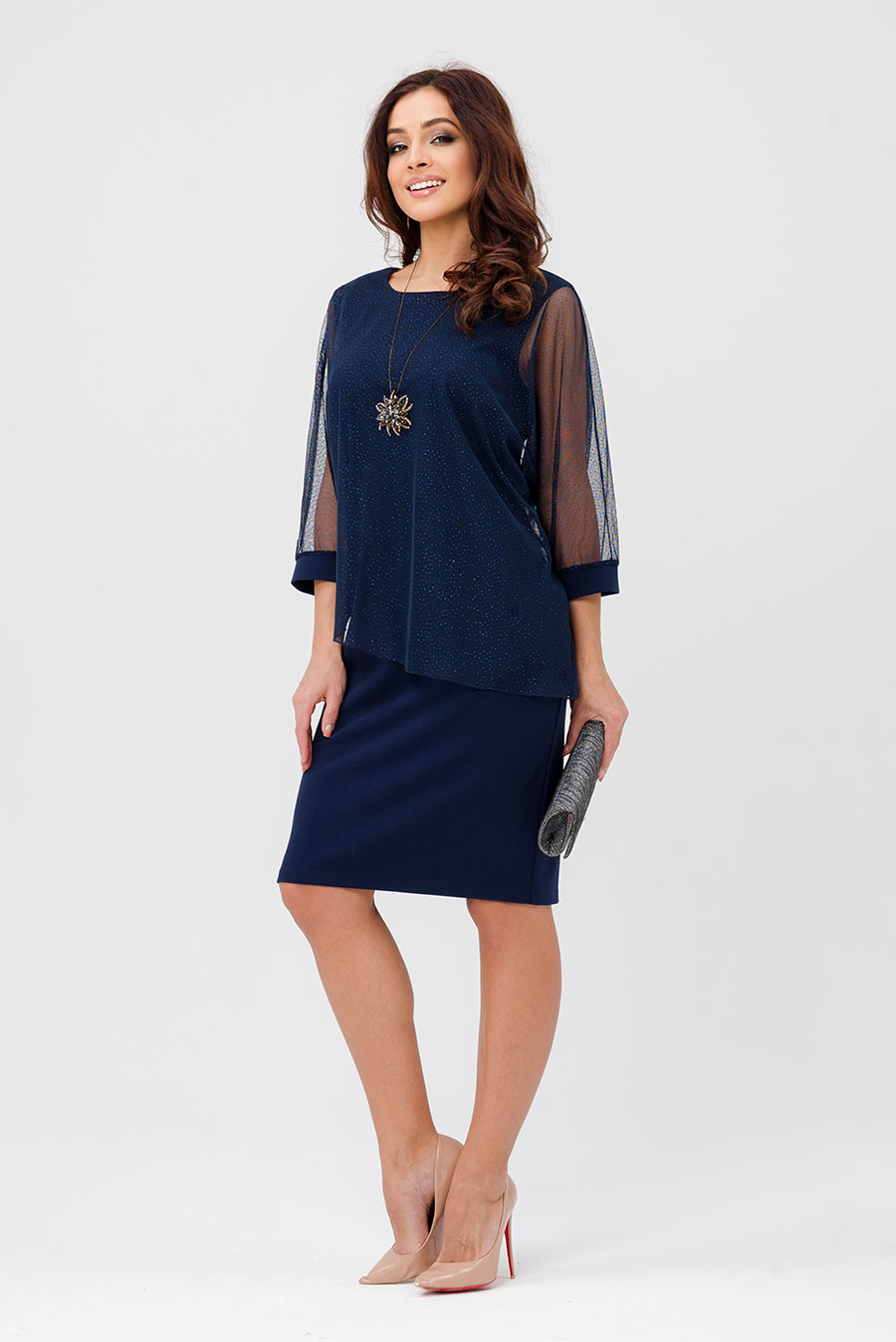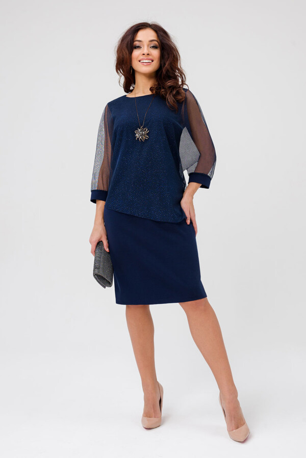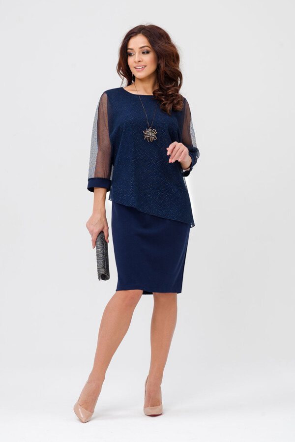 Праздничная новинка для наших любимых Богинь! Коктейльное платье-футляр , дополненное блузой «летучая мышь» из эффектного гипюра с золотистой нитью. Идеально подойдет для обладательниц размеров SIZE PLUS! Оно деликатно скроет недостатки и выгодно подчеркнёт достоинства. Отличный выбор для особых случаев и не только.