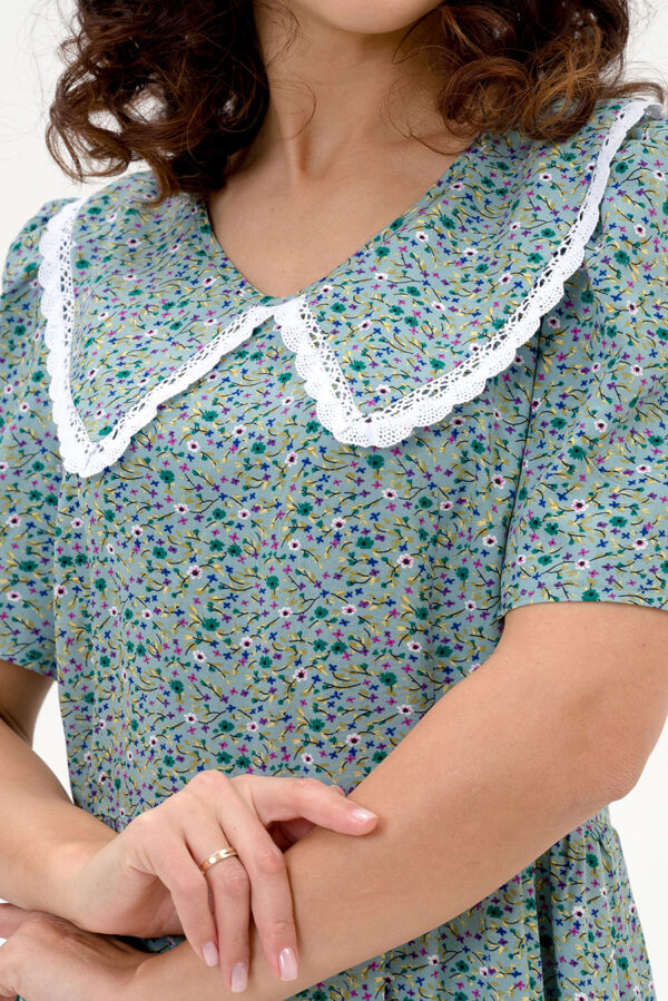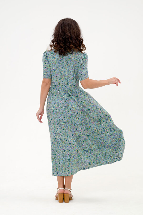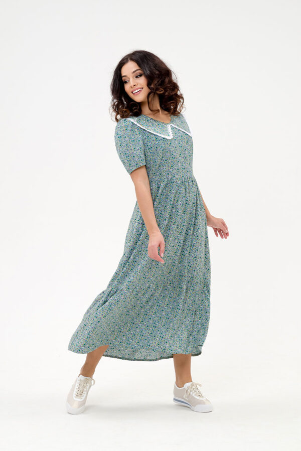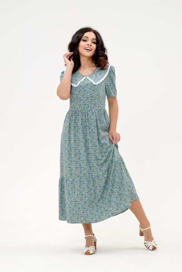 Летнее женское платье из штапельной ткани нежной цветочной расцветки.