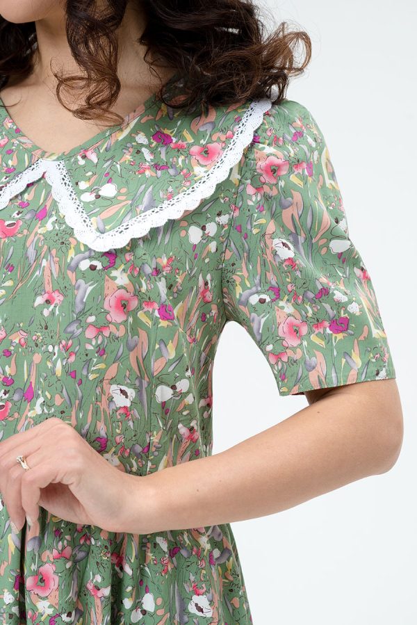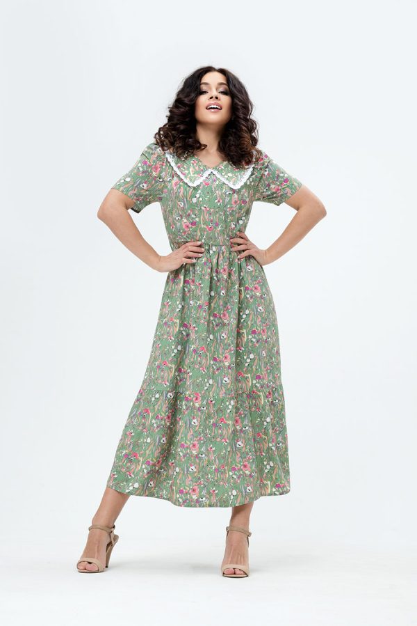 Летнее женское платье из штапельной ткани нежной цветочной расцветки.