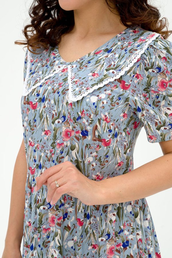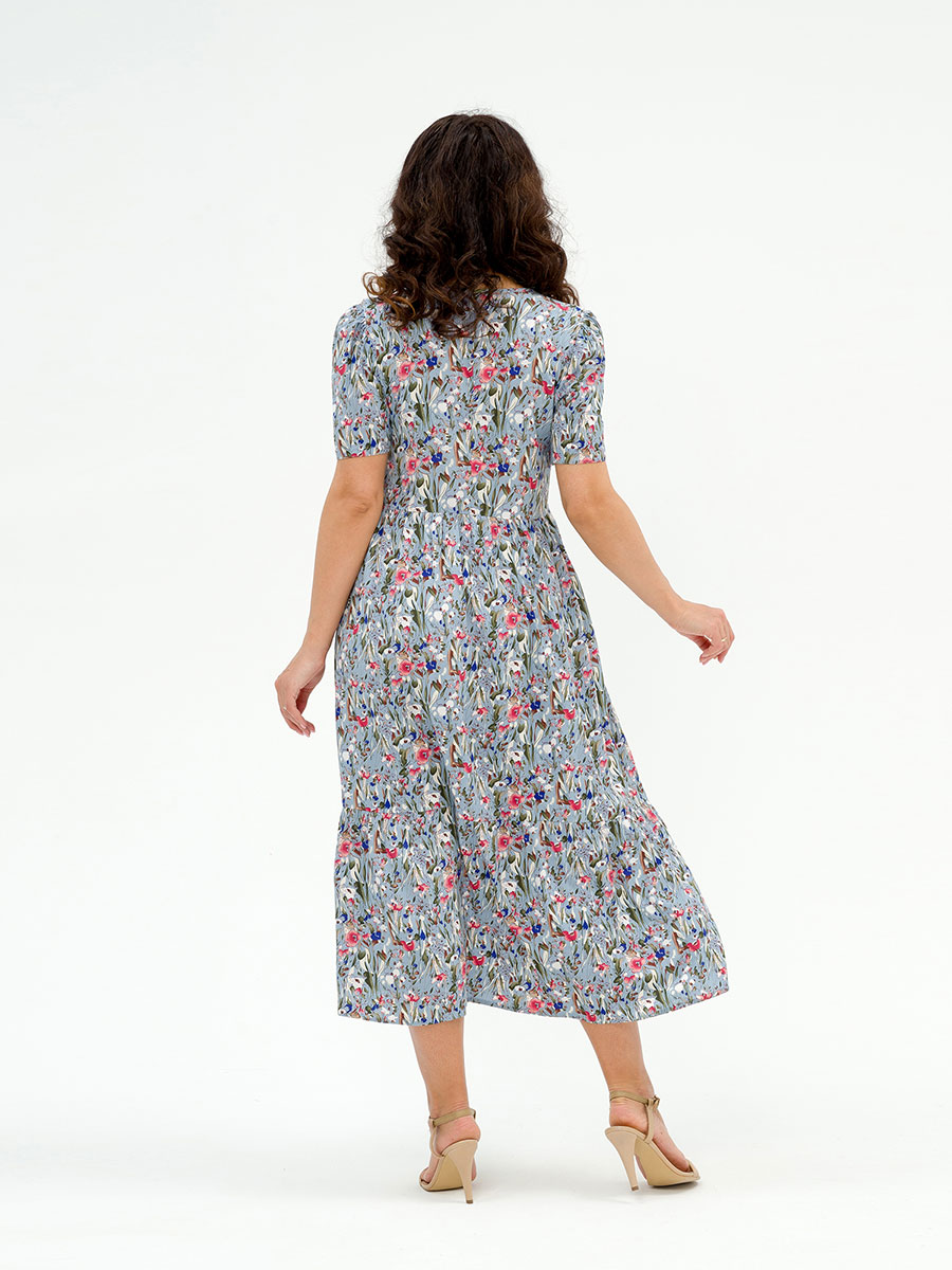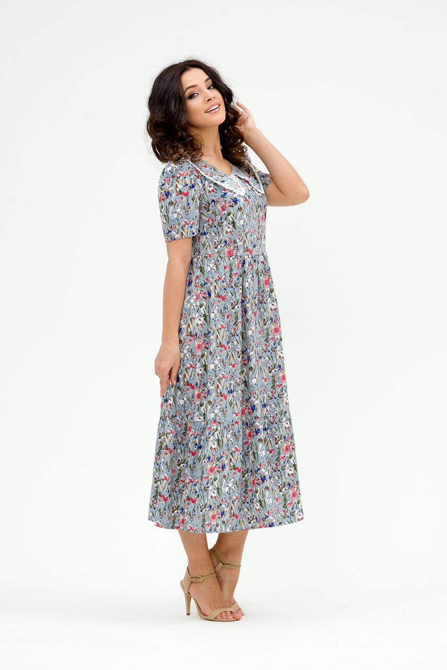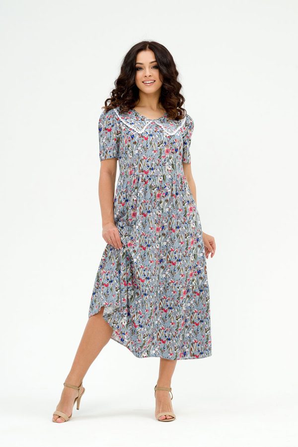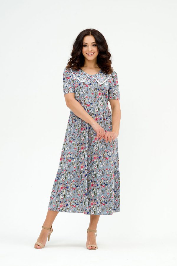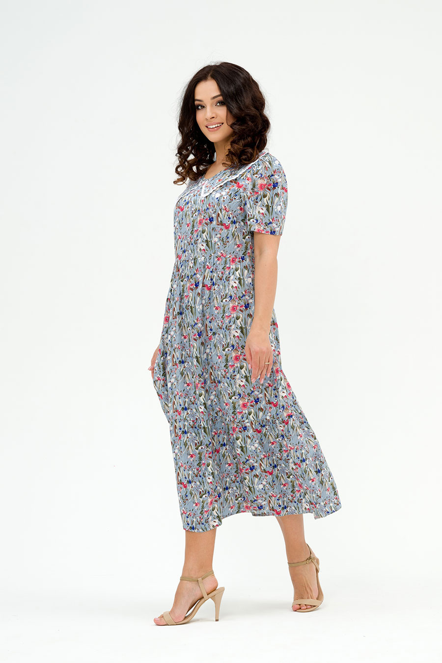 Летнее женское платье из штапельной ткани нежной цветочной расцветки.