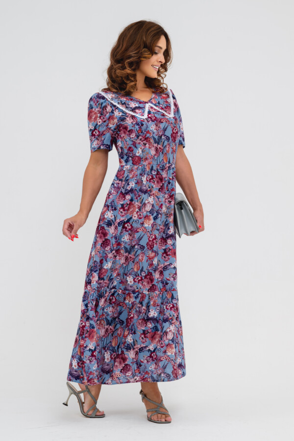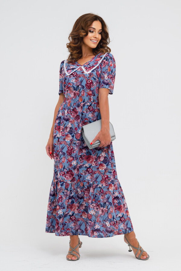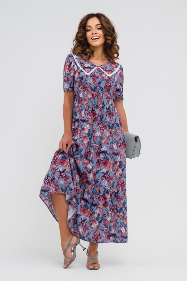 Летнее женское платье из штапельной ткани нежной цветочной расцветки.
