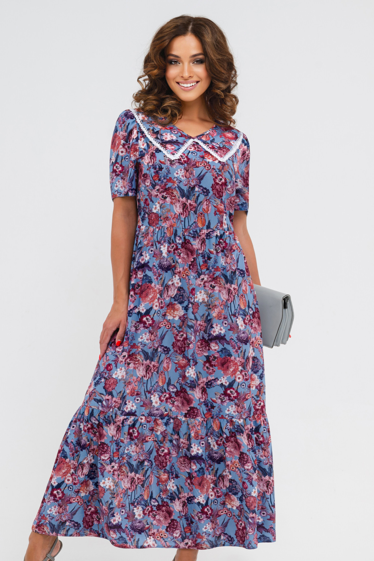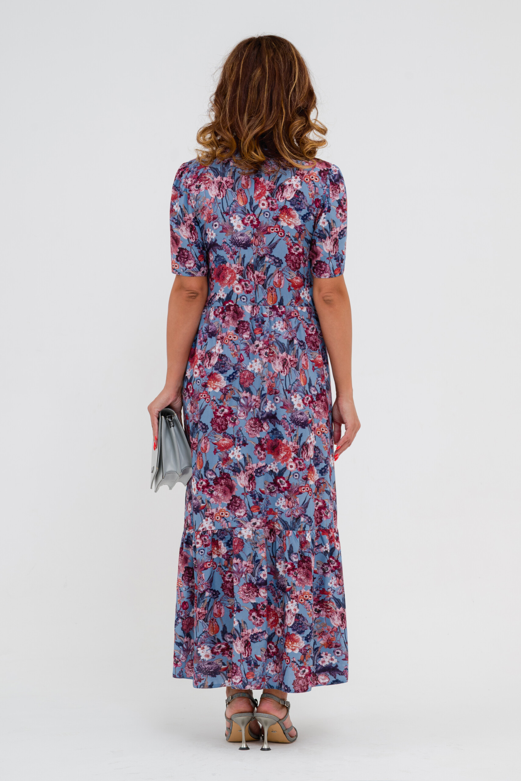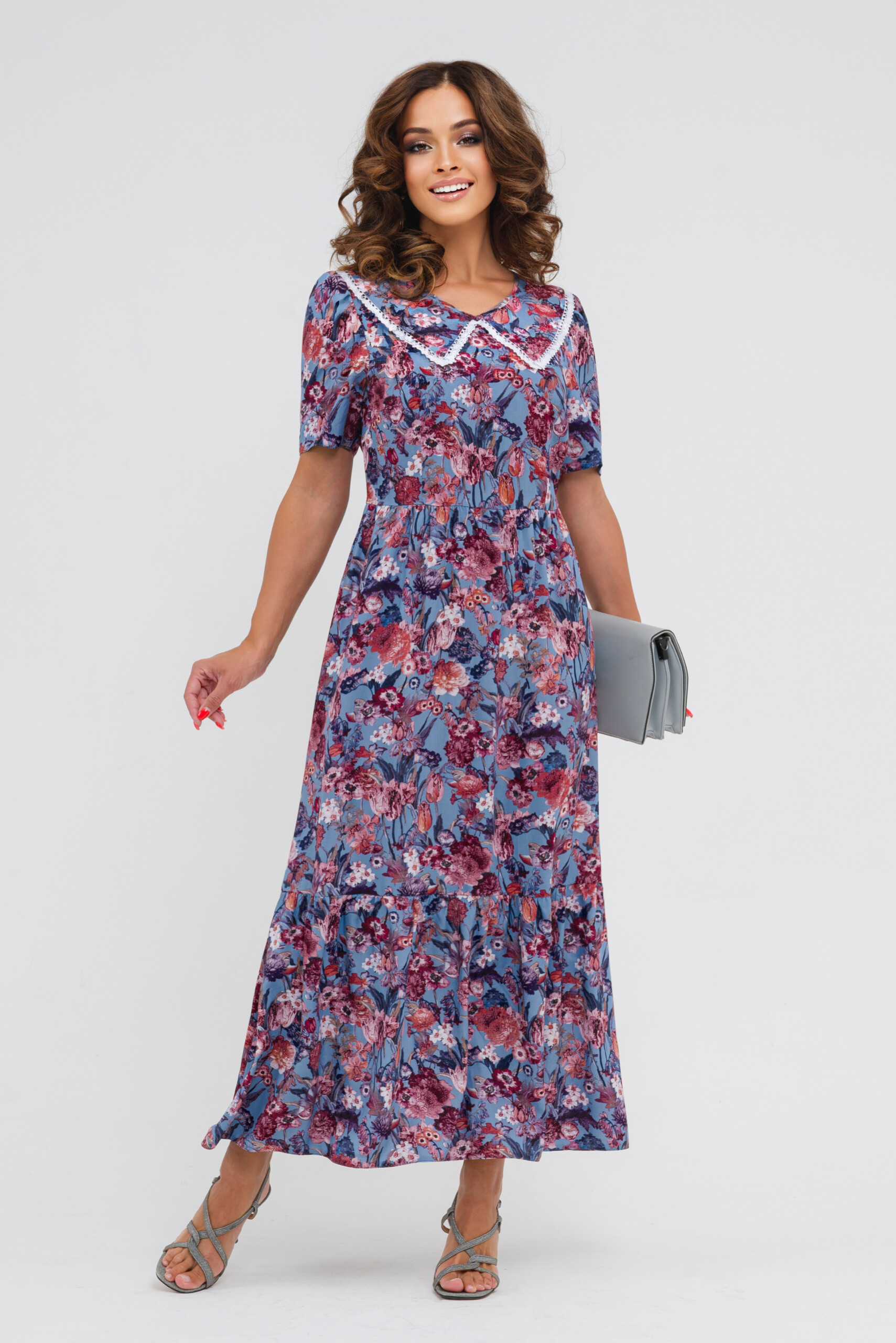 Летнее женское платье из штапельной ткани нежной цветочной расцветки.