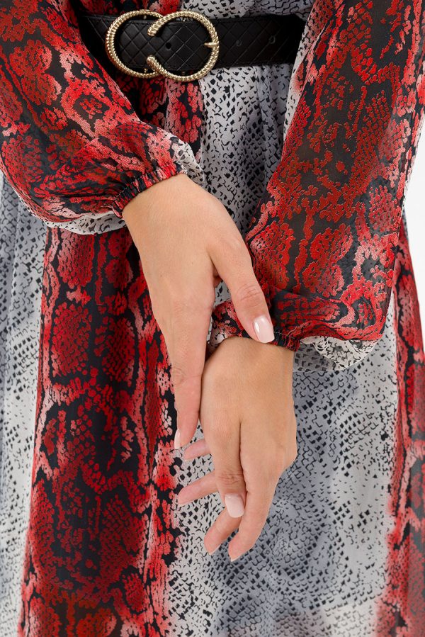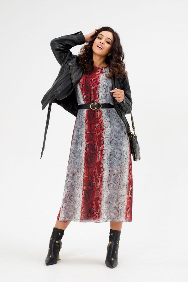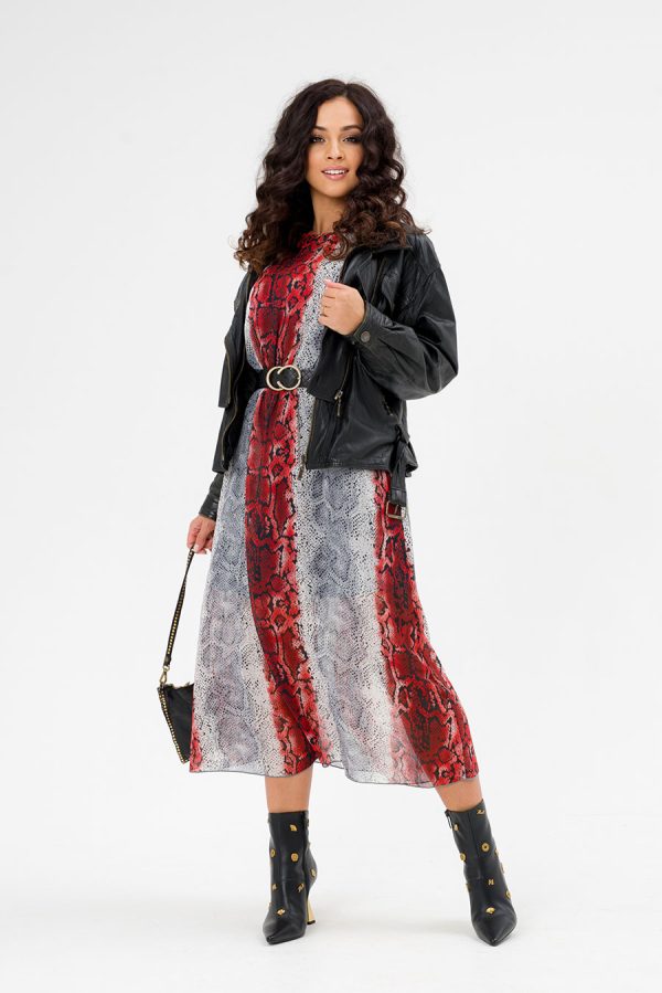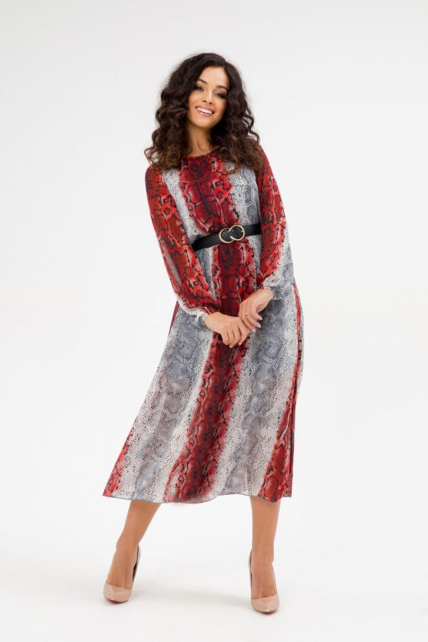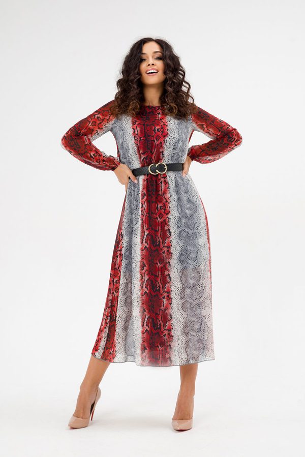 Платье длины миди, с поясом, длинными рукавами на резинках, выполнено из легкого и воздухопроницаемого шифона, с подкладкой из трикотажа. Платье отрезное по талии с резинкой. Может быть использовано не только как отпускное, для торжества, для отдыха, но как и офисное, и повседневное. Его можно комбинировать с кардиганом, жакетом, пальто, кожаной курткой, шубкой. Такое нарядное платье позволит каждой женщине выглядеть великолепно. Это платье — отличный подарок для женщин на любой знаменательный день или просто так. Оно подчеркнет женственность в любом возрасте. Элегантный фасон и эффектная расцветка платья добавят стиля вашему гардеробу.