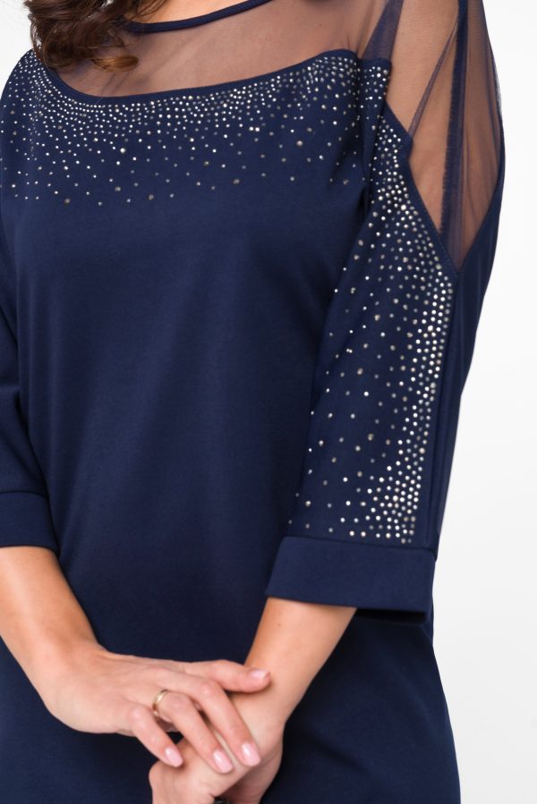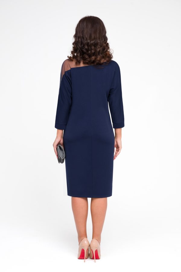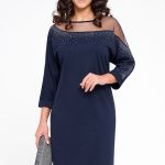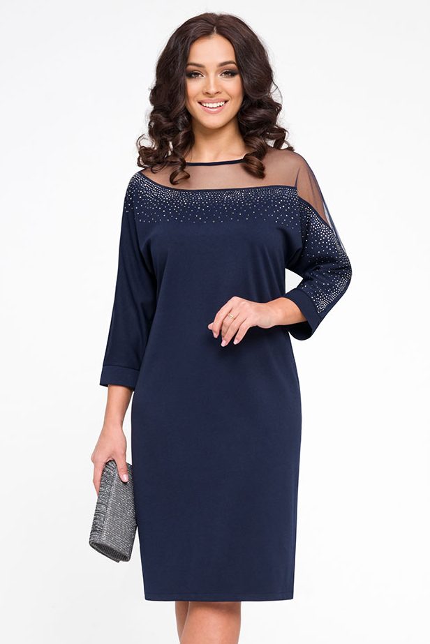 Платье женское футляр , декорированное сеткой – это идеальное решение для любого торжественного случая. Платье праздничное, выполнено из трикотажной ткани , полочка декорирована сеткой и стазами , что делает его сексуальным и притягивающим взоры. Длина миди, рукав длинный , оно эффектно выглядит на женщинах SIZE PLUS и не только.