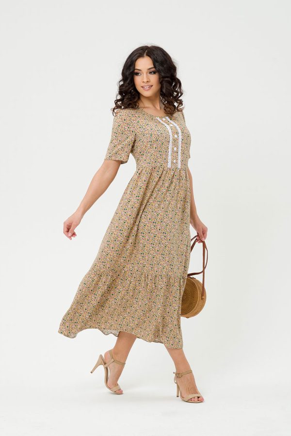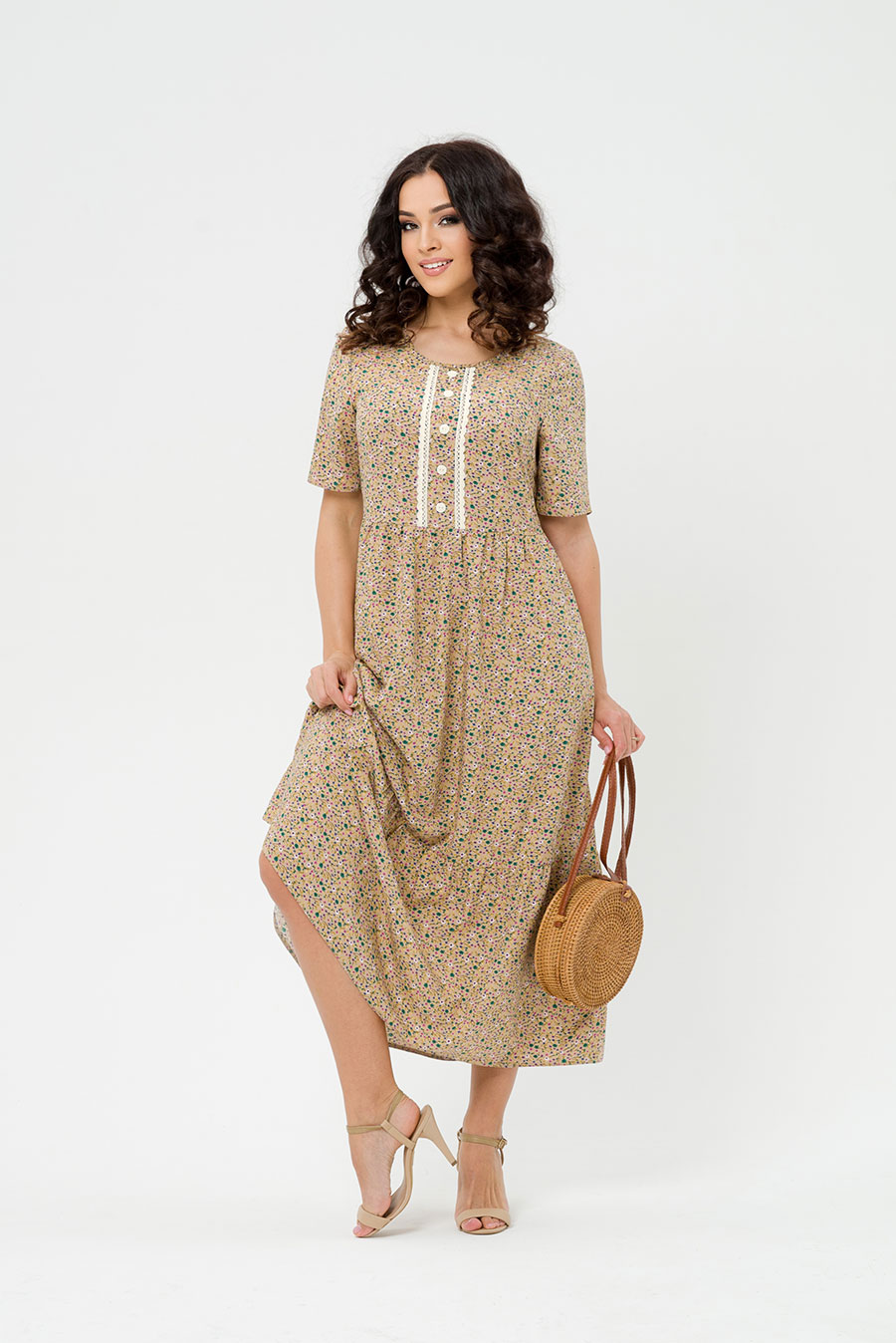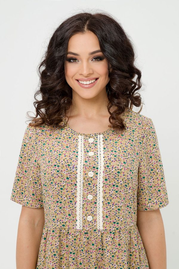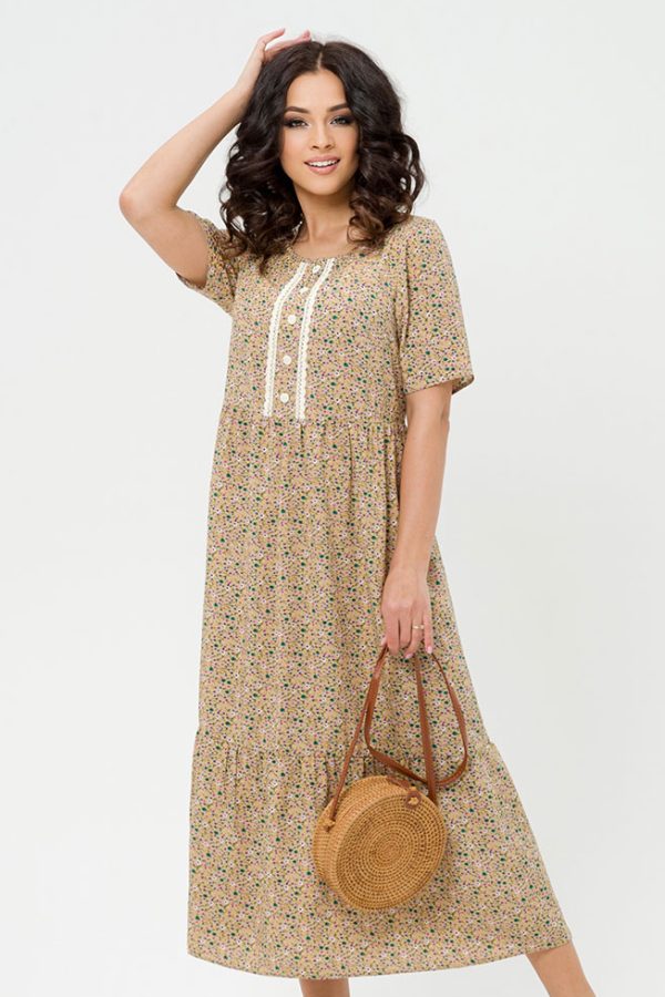Летнее женское платье из штапельной ткани нежной цветочной расцветки.