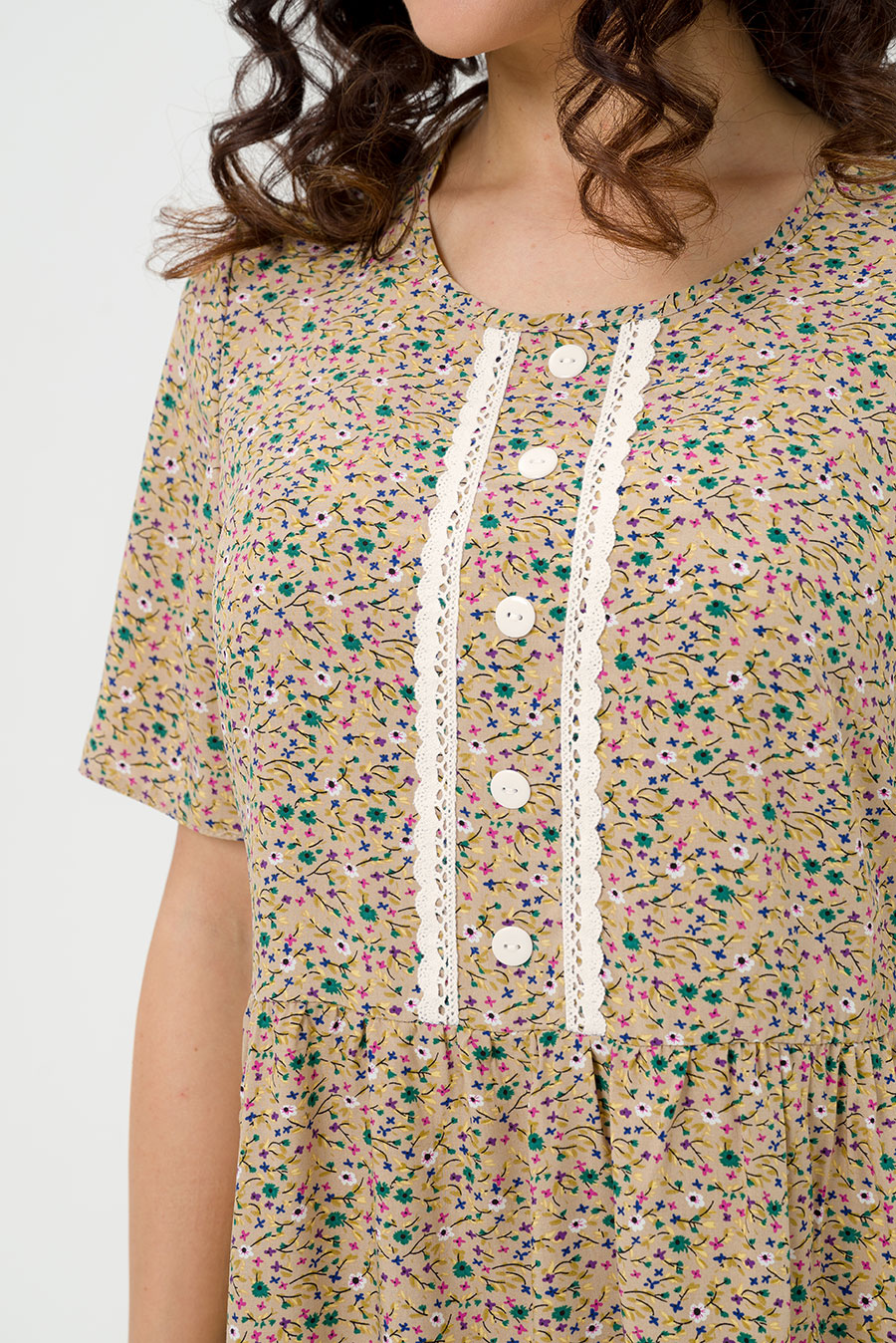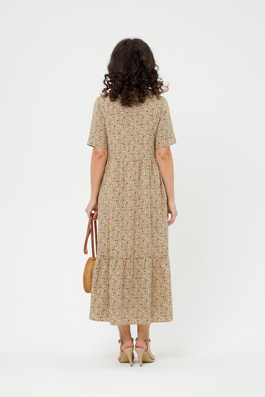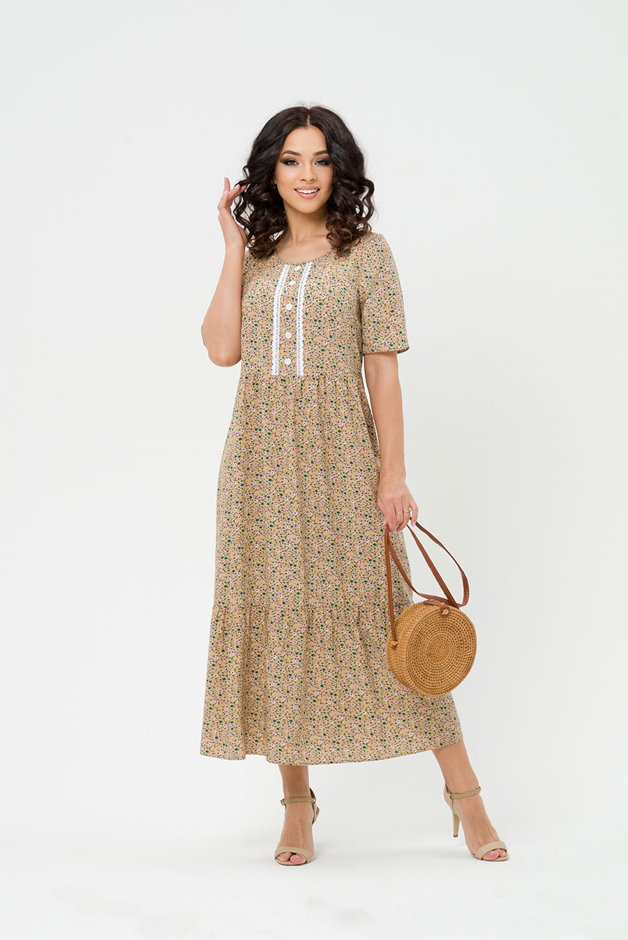 Летнее женское платье из штапельной ткани нежной цветочной расцветки.