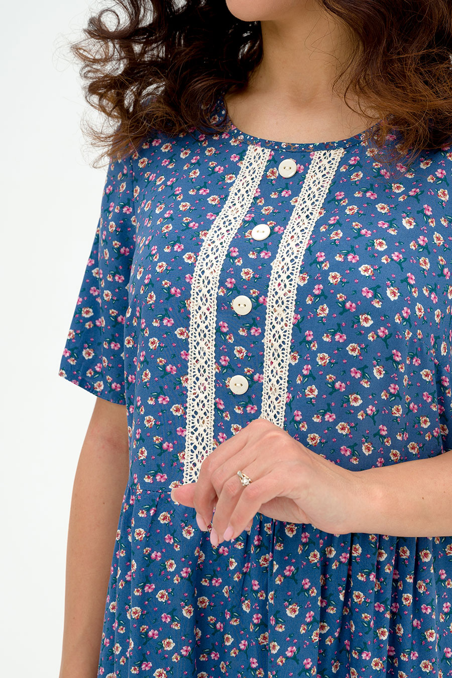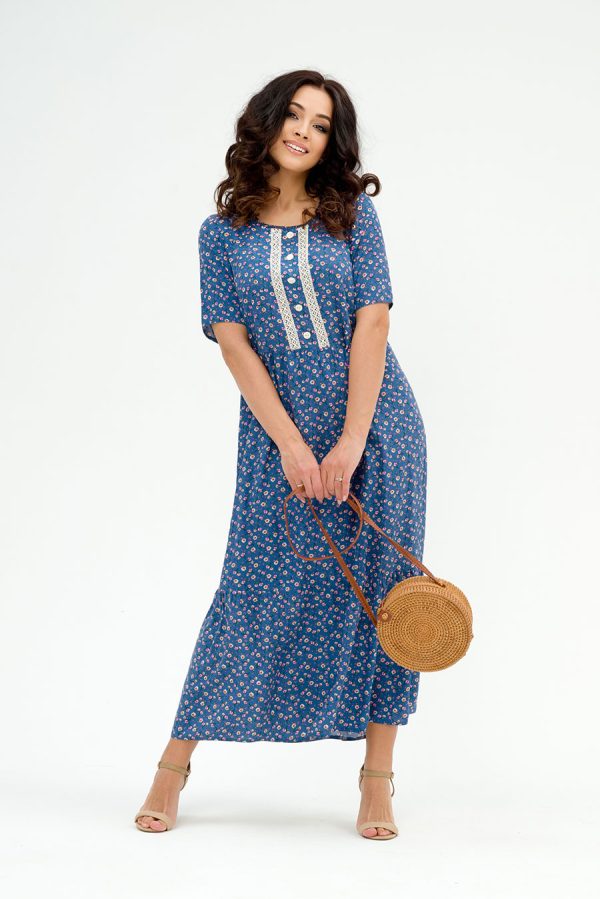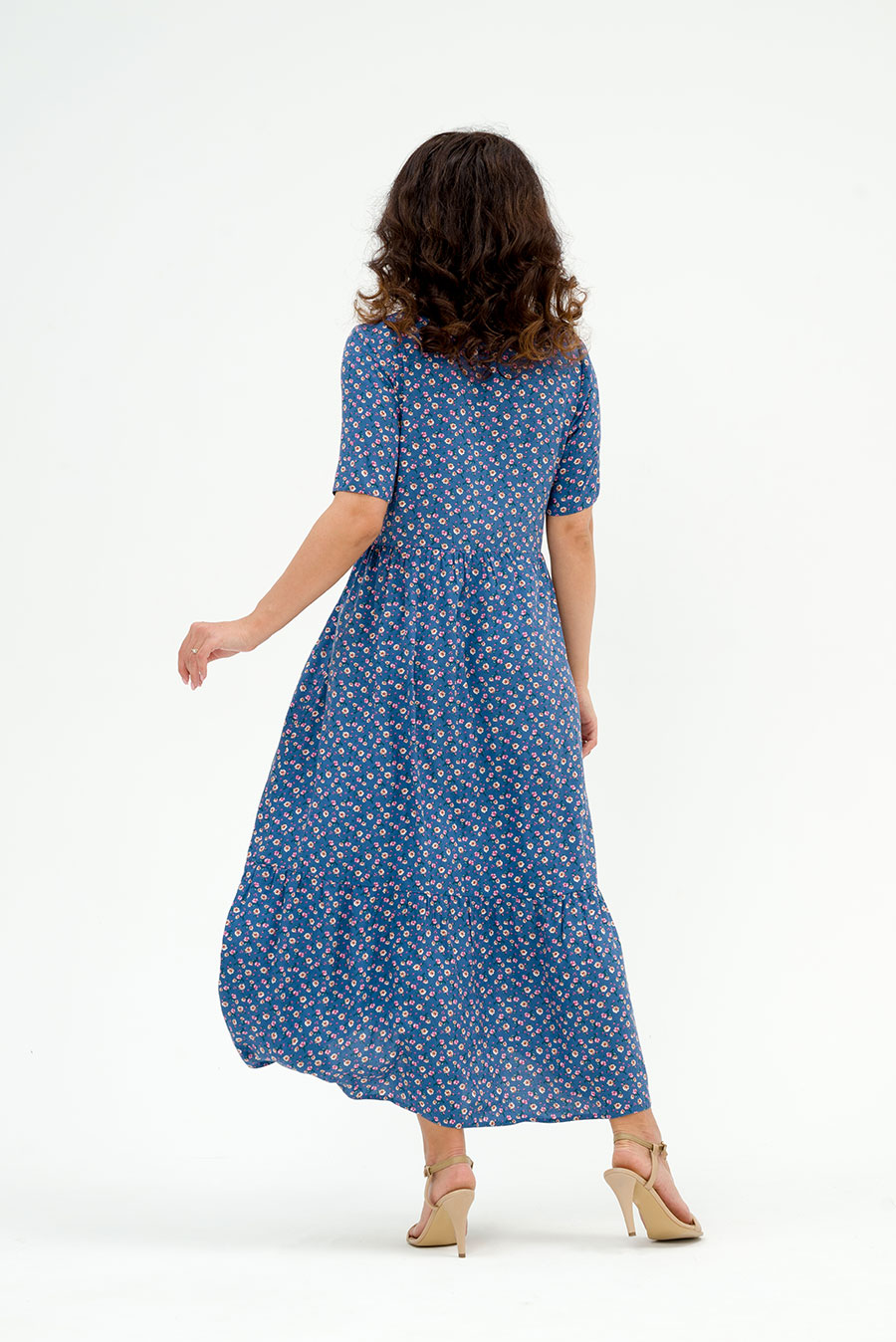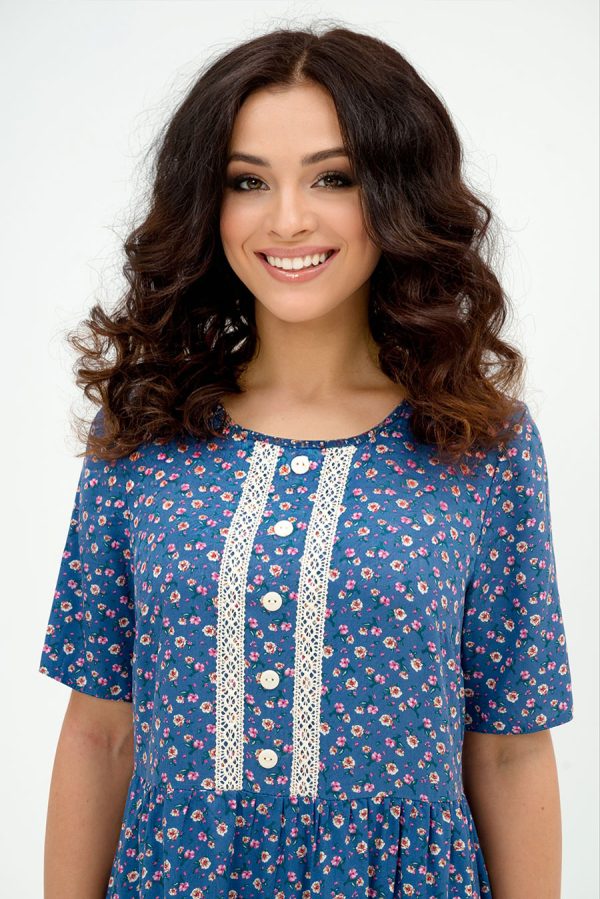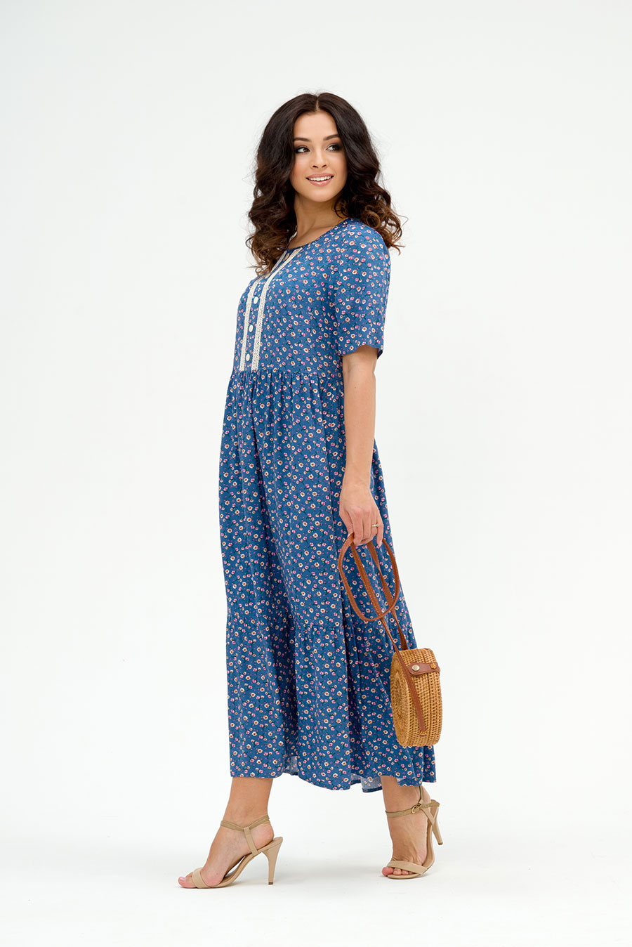 Летнее женское платье из штапельной ткани нежной цветочной расцветки.