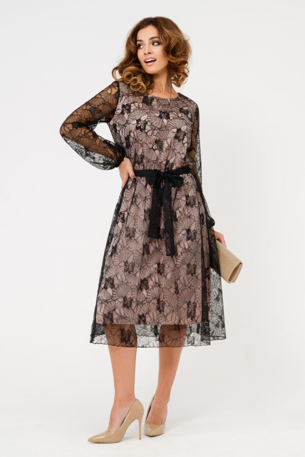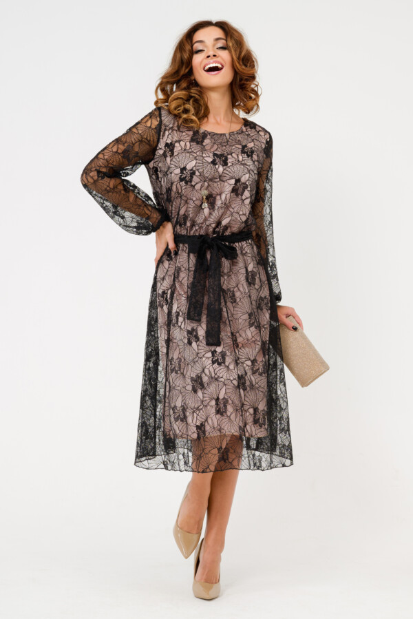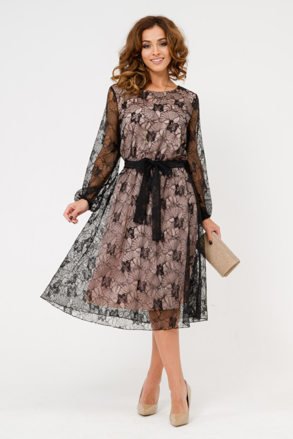Новинка для наших любимых Богинь! Праздничное платье с длинным рукавом-фонарик, выполненное из роскошного гипюра. Идеально для особенных моментов!