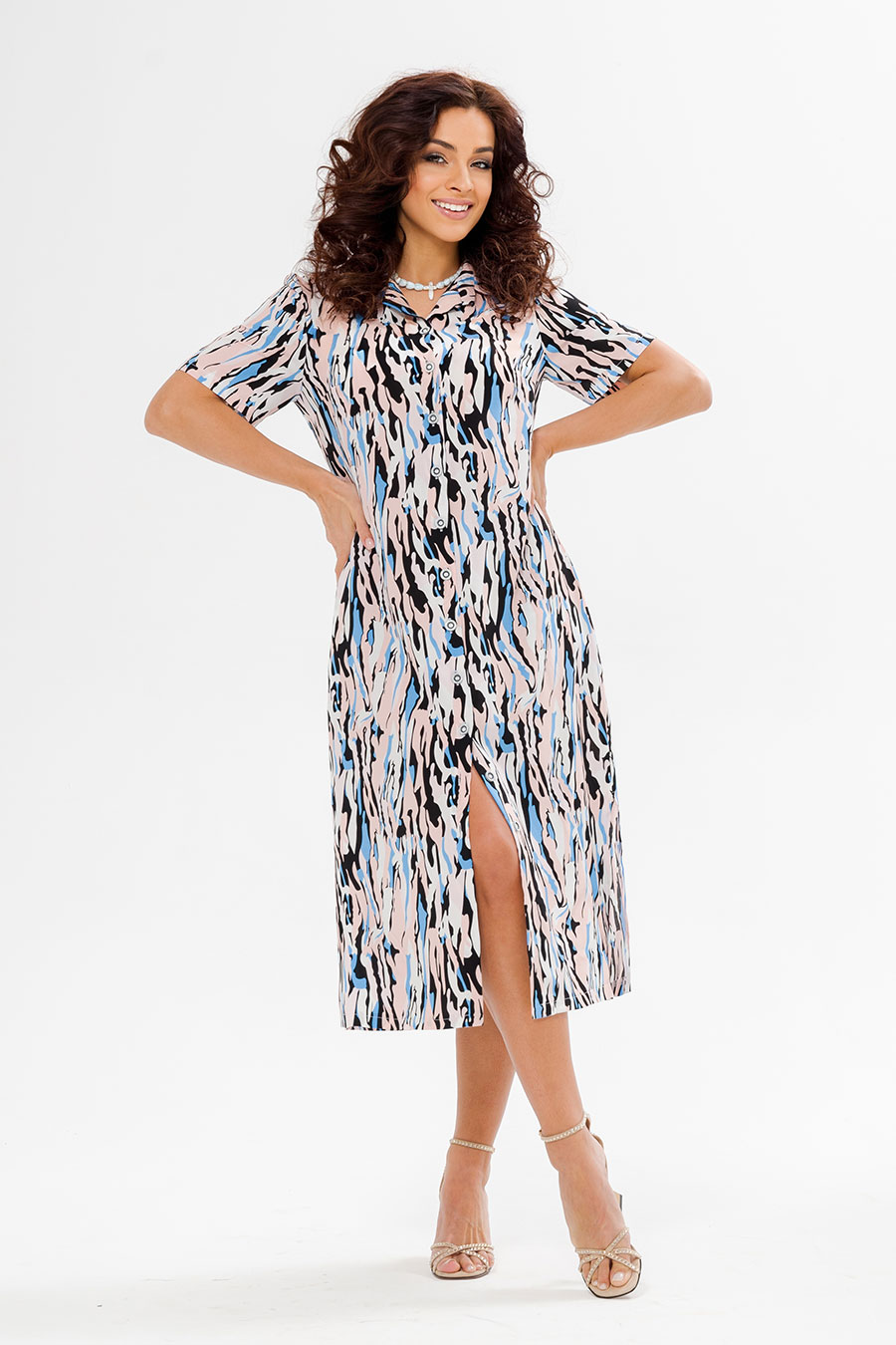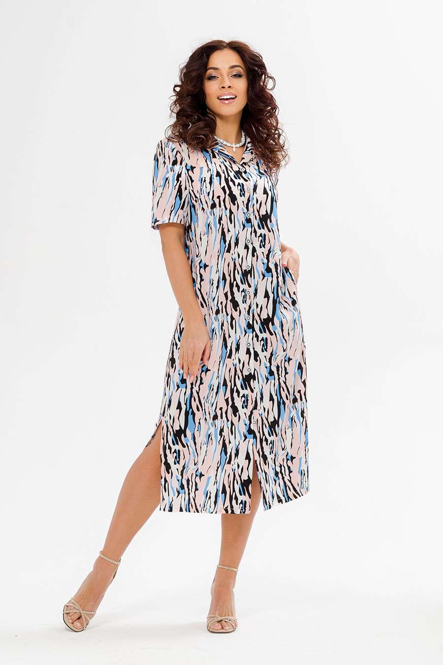 Просторная модель свободного кроя, очень комфортная .Такие рубашки можно носить как с поясом ,так и без. Модель одинаково хорошо подойдёт как юным модницам, так и стильным леди . Платье- рубашка выполнена из легкого штапеля.