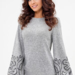 Джемпер с модными рукавами-фонариками из тёплого и мягкого трикотажного полотна с цветочным принтом сделает ваш образ женственным. Он отлично сочетается с брюками и юбкой.
