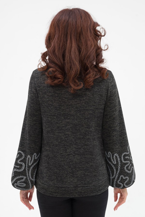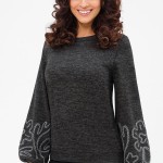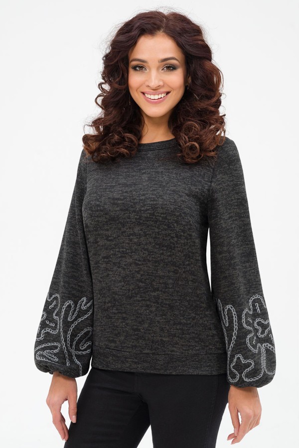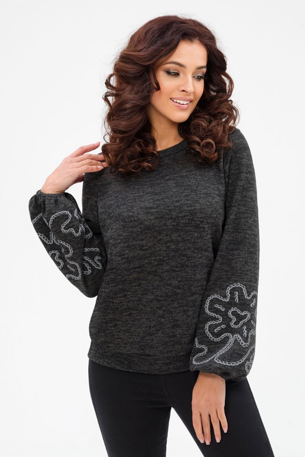Джемпер с модными рукавами-фонариками из тёплого и мягкого трикотажного полотна с цветочным принтом сделает ваш образ женственным. Он отлично сочетается с брюками и юбкой.