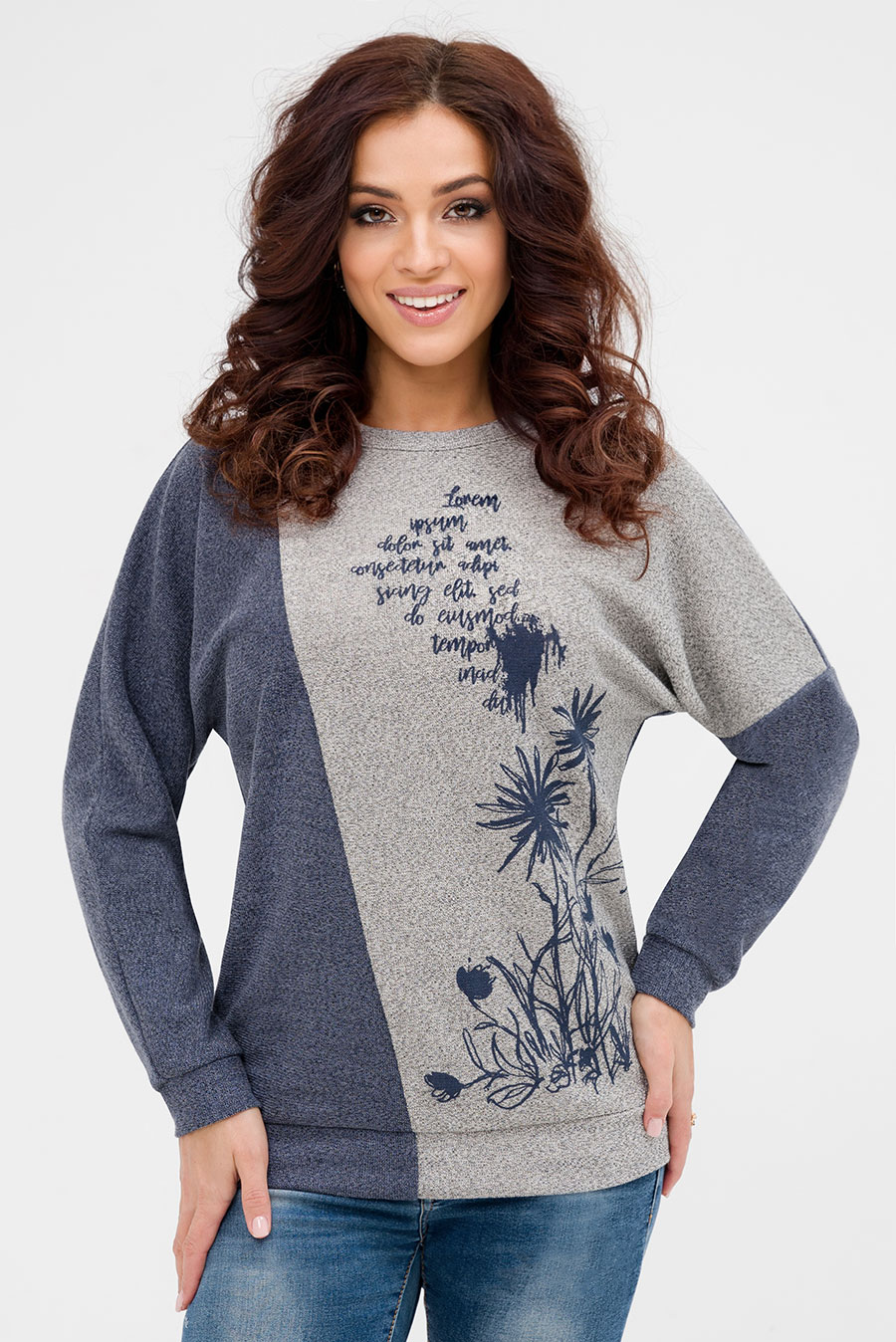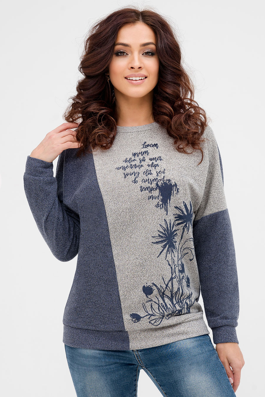 Джемпер из тёплого и мягкого трикотажного полотна с принтом сделает ваш образ женственным. Он отлично сочетается с брюками и юбкой.