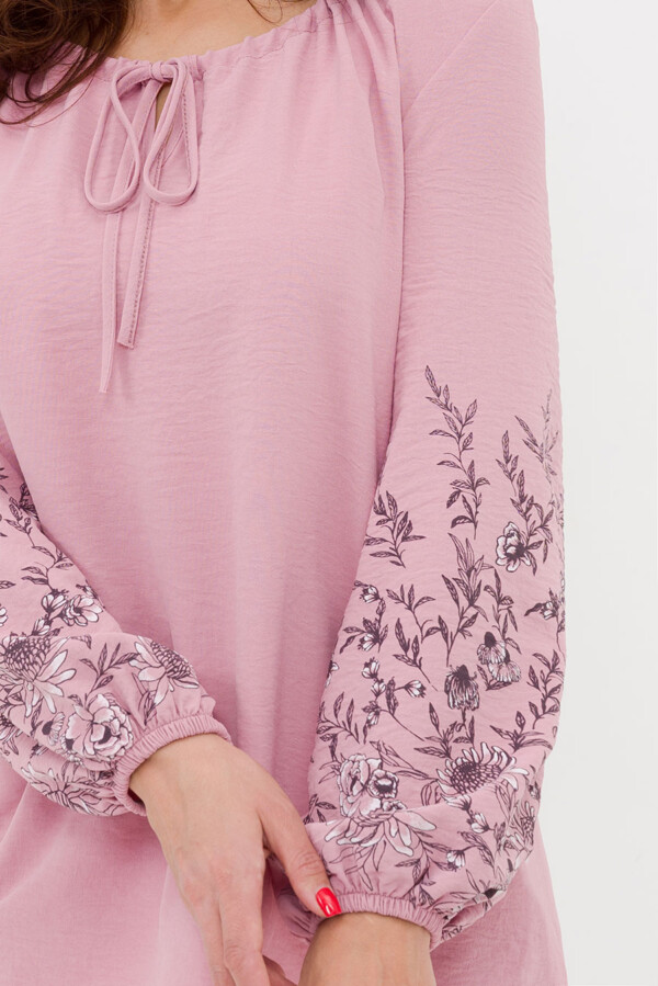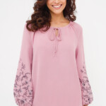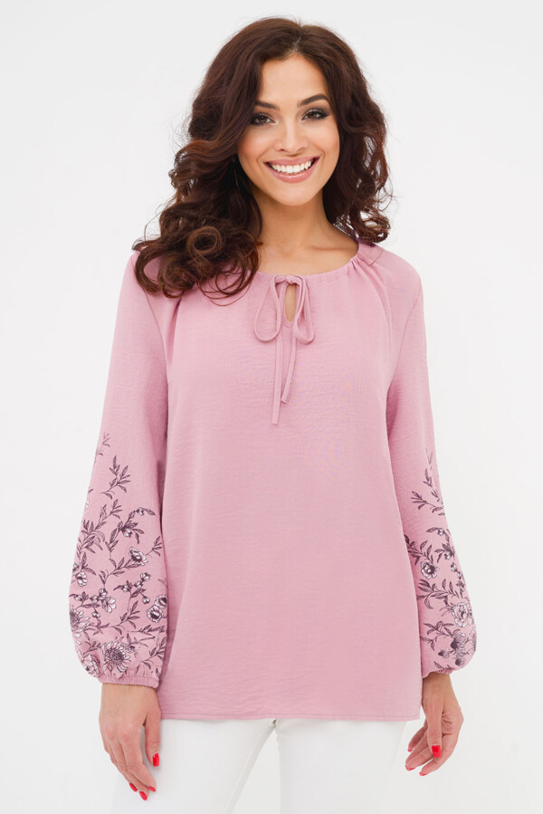 Модная блуза в стиле «бохо». Модель с соблазнительными завязками на груди и модными рукавами на резинках.